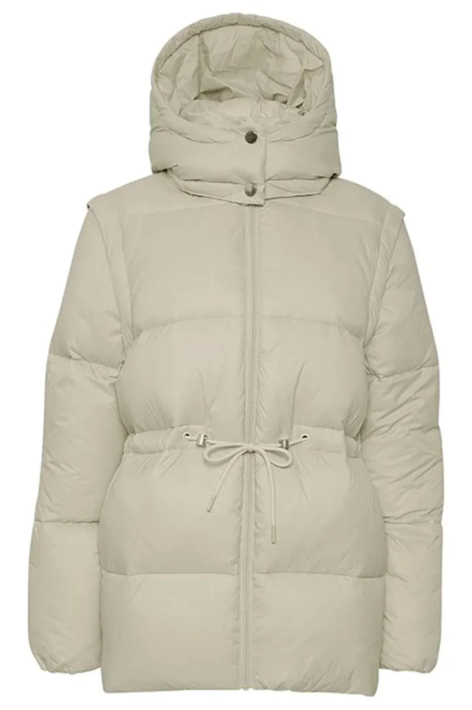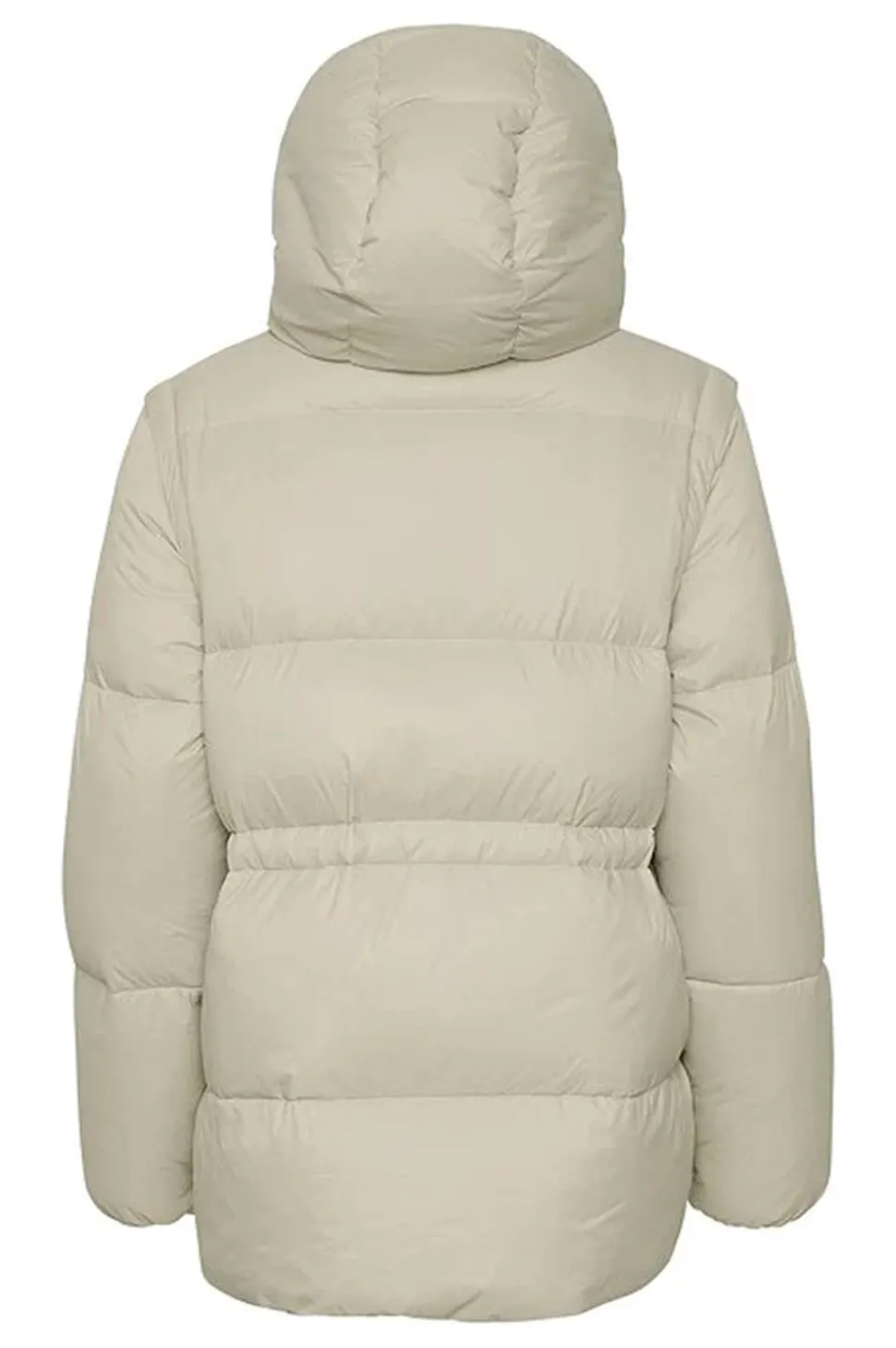 Camelinepw OTW fra Part Two har både avtagbare ermer og hette, så her får du både jakke og vest, som begge kan brukes både med og uten hette. Det gjør Cameline til et svært anvendelig plagg for ulike værforhold. Jakken er både lett og varm, siden den er fylt med dun/fjær, og den har et glatt, behagelig ytterstoff. Snøringen i livet gir mulighet for å markere midjen.
